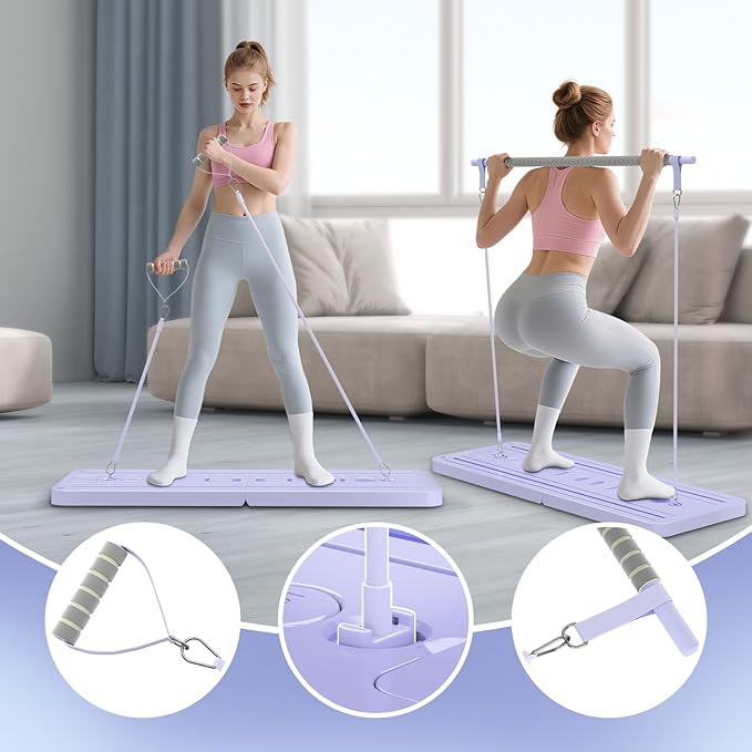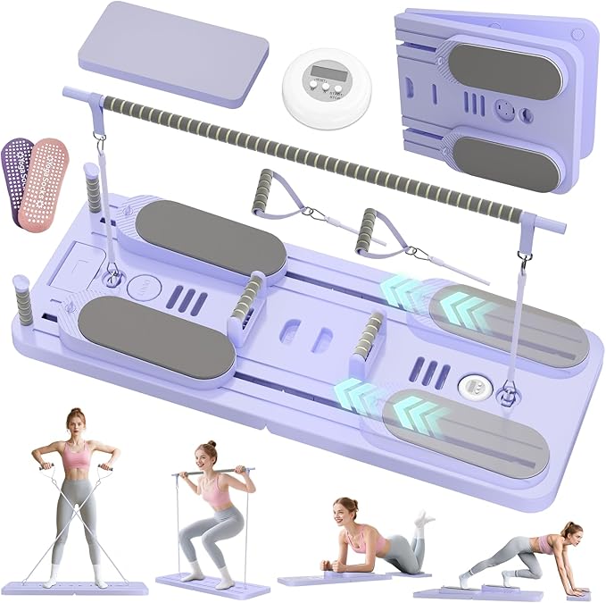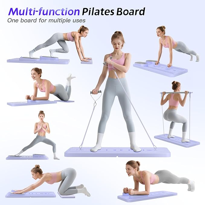 • 【5-in-1 Pilates Reformer Board】 Unlock 15+ exercises with this all-in-one Pilates reformer board, combining Pilates board, resistance bands, ab roller, push-up handles, balance board, plank support, and Pilates bar. Perfect for core, glutes, legs, arms, and full body sculpting, this compact pilates equipment brings studio-quality results to your doorstep