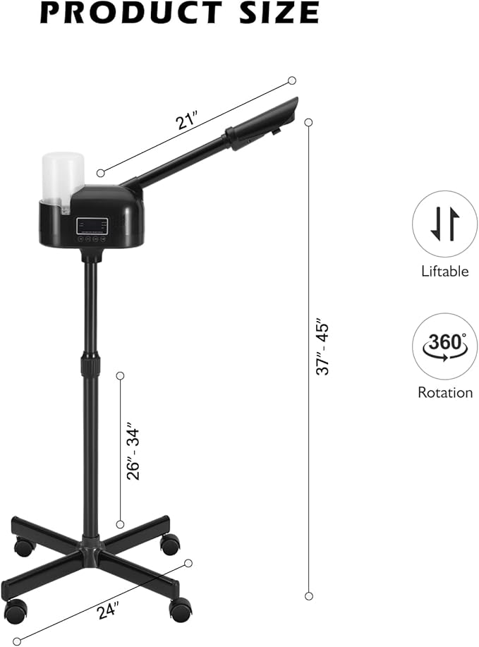 • 【Adjustable Arm & Spray Nozzle】Easily direct steam where you want it. With its swiveling spray arm and adjustable height, it's perfect for both barbershop customers and spa beds