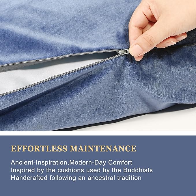 Meditation Zafu Cushion Set with Buckwheat Hulls & Memory Foam - Ergonomic Support for Yoga & Sitting - Removable Machine-Washable Luxury Velvet Cover - for Adults and Kids (Blue(COVER ONLY))
