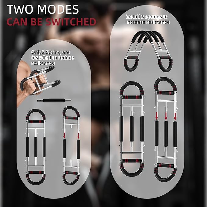 • ADJUSTABLE RESISTANCE FOR ALL FITNESS LEVELS: Progress at your own pace with multiple strength levels (30-180lbs resistance options). Perfect for beginners building foundational strength or professional athletes pushing through plateaus. Easily customize the challenge to match your evolving fitness goals.Springs with holes on one end should be installed in the middle position. This design simplifies the assembly process for the twister arm trainer.
