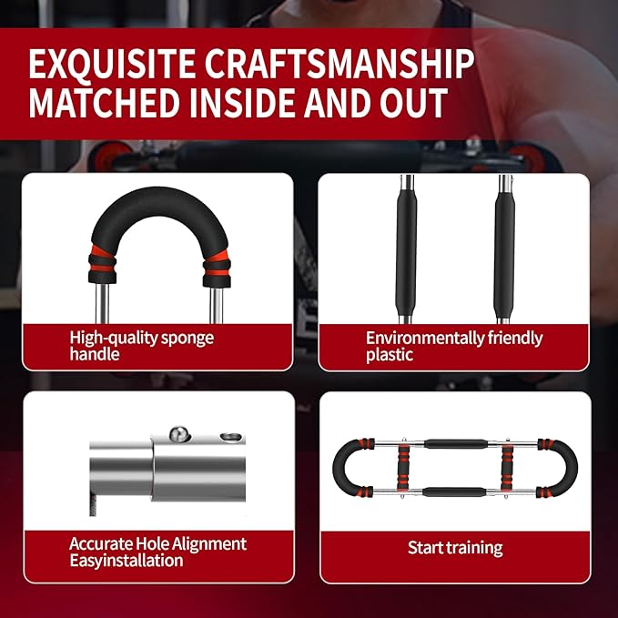 • ❤ Unique Full Body Fitness Equipment: U-shaped power bar can act as your personal fitness trainer, helping you achieve excellent chest training results with training guide charts. The power bar can accurately train multiple muscle groups, including chest, arms, biceps, abdominal muscles, shoulders and back, and thigh muscles