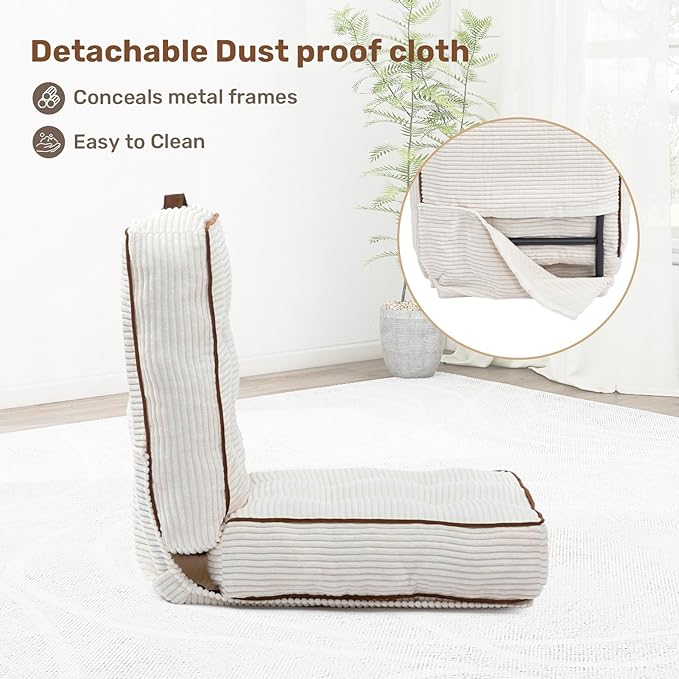 HollyHOME Adjustable Floor Chair with 6 Positions, Folding Lazy Sofa Recliner with Back Support, Thick Sponge Cushion and Portable Handle, Comfy Gaming Meditation Chair for Dorm, Bedroom, Beige