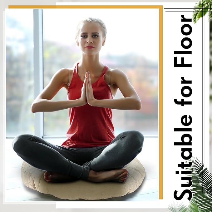 Jerify 2 Pcs Beige Floor Pillows Cushions 22 x 22 Inch Round Square Large Meditation Floor Pillow for Adults Meditation Cushion for Seating Gift Christmas(Round)