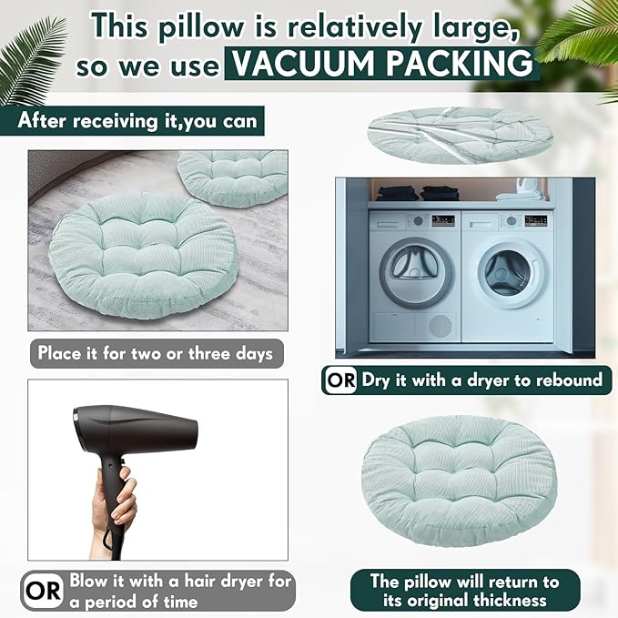 • Quickly Recover: After receiving the product, you can gently pat our big soft floor cushion pillow or leave it in a ventilated area for a few hours, or you can use a dryer to help it return to normal thickness, easy and convenient, to add a touch of elegance