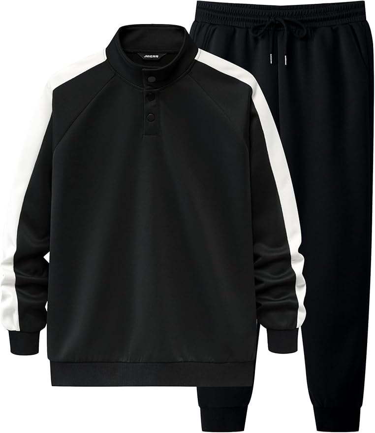 JMIERR Men's 2 Piece Casual Outfits Quarter Button Lightweight Sweatshirt Tracksuit & Joggers Sweatpants Sweatsuit Set