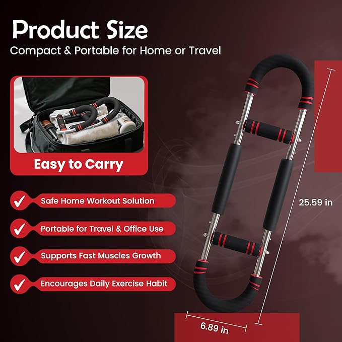 • Workout Anywhere – Evolve Mart Arm Twister Trainer is lightweight and portable, making it perfect for workouts at home, in the office, or while travelling and gym. This versatile chest and bicep builder helps strengthen your arms, chest, shoulders, and back with ease. Its compact design makes it simple to store in a bag or drawer, so you can keep up with your fitness routine anywhere. Ideal for busy lifestyles, it lets you train, tone, and build muscle wherever you go