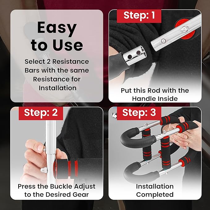 • Fast Assembly, Easy Workout – Evolve Mart Chest Clip Muscle Trainer is quick to put together with no tools needed, so you can start training right away. This chest and arm twister is made for daily workouts use. It helps you strengthen and shape your chest, arms, shoulders, and back while improving posture and stamina. It comes with 2 adjustable resistance levels to match any fitness level. Use it at your own pace, enjoy every workout, and get effective, convenient results right from home.