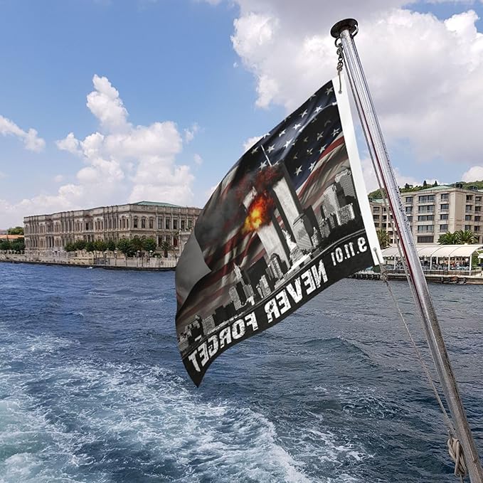 • EATHER-RESISTANT & PREMIUM MATERIAL:The 911 Never Forget Flag Made of 100%polyester, the material is durable, fade-resistant and enhances color vibrancy for a new look that lasts longer, easily grabs people's attention and also adds a bit of charm to your patio.