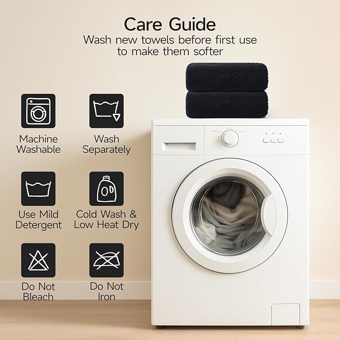 • Easy Care: These bath towel sets are easy to maintain—machine wash in cold water and tumble dry on low. Wash before first use for best results, and avoid bleach or fabric softeners to preserve their softness, absorbency, and vibrant color