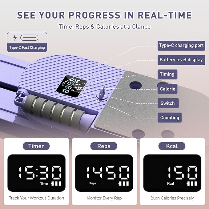 • 【All-in-One Smart Touchscreen】Our pilates reformer is equipped with an integrated smart touchscreen that accurately tracks exercise repetitions, calories burned, and workout duration in real time. It can further boost your motivation during workouts. The one-touch start/stop function and adjustable modes ensure effortless operation, while the USB charging design eliminates battery replacements for eco-friendly convenience.