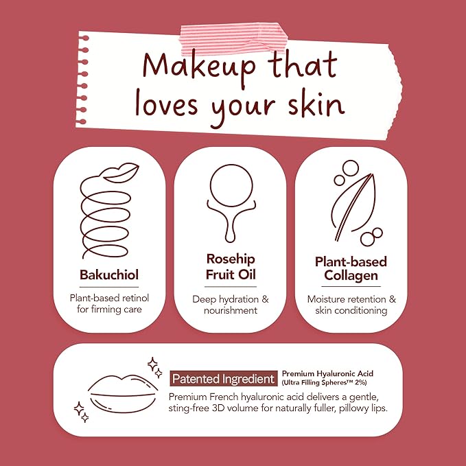 • Long-Lasting Hydration & Plumping – Infused with 10 types of fruit seed oils and plant-derived collagen, this makeup locks in moisture, gives a juicy plump effect, and keeps your skin glowing all day.