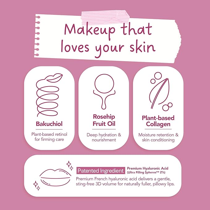 • Long-Lasting Hydration & Plumping – Infused with 10 types of fruit seed oils and plant-derived collagen, this makeup locks in moisture, gives a juicy plump effect, and keeps your skin glowing all day.