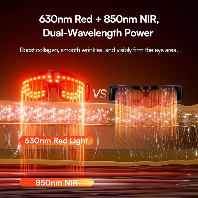 • Dual-Wavelength for Deep Renewal - Go beyond the surface with 630nm red and 850nm NIR light. This powerful under eye red light therapy combo boosts collagen, smooths wrinkles, and firms skin. It’s science-driven skin care that works from within to give you visibly renewed eyes.