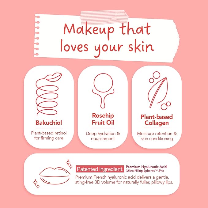 • Long-Lasting Hydration & Plumping – Infused with 10 types of fruit seed oils and plant-derived collagen, this makeup locks in moisture, gives a juicy plump effect, and keeps your skin glowing all day.
