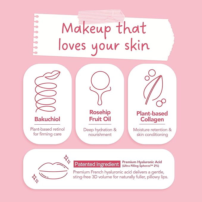 • Long-Lasting Hydration & Plumping – Infused with 10 types of fruit seed oils and plant-derived collagen, this makeup locks in moisture, gives a juicy plump effect, and keeps your skin glowing all day.