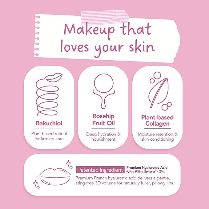 • Long-Lasting Hydration & Plumping – Infused with 10 types of fruit seed oils and plant-derived collagen, this makeup locks in moisture, gives a juicy plump effect, and keeps your skin glowing all day.