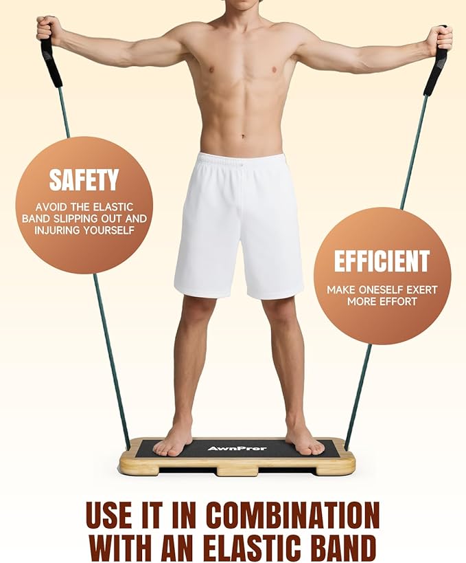 • Non Slip Surface: On the front of the resistance band platform, there is anti slip sandpaper, which not only effectively prevents sweating and smoothness, but also allows you to train barefoot. Our fitness board has a good tactile feeling. The bottom also has anti slip pads, allowing you to train in the living room, gym, yoga studio, and fitness center.