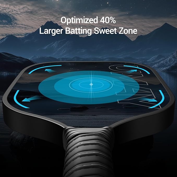 • Enlarged Sweet Spot & Streamlined Frame: This pickleball paddle boasts a 40% larger sweet zone, delivering consistent performance even on off-center hits. The streamlined edge design cuts through air resistance for faster, smoother swings. With its reinforced frame thickened to 11mm that provides enhanced durability to withstand powerful impacts and maintain its shape through extended play, which is your reliable partner for every competitive match