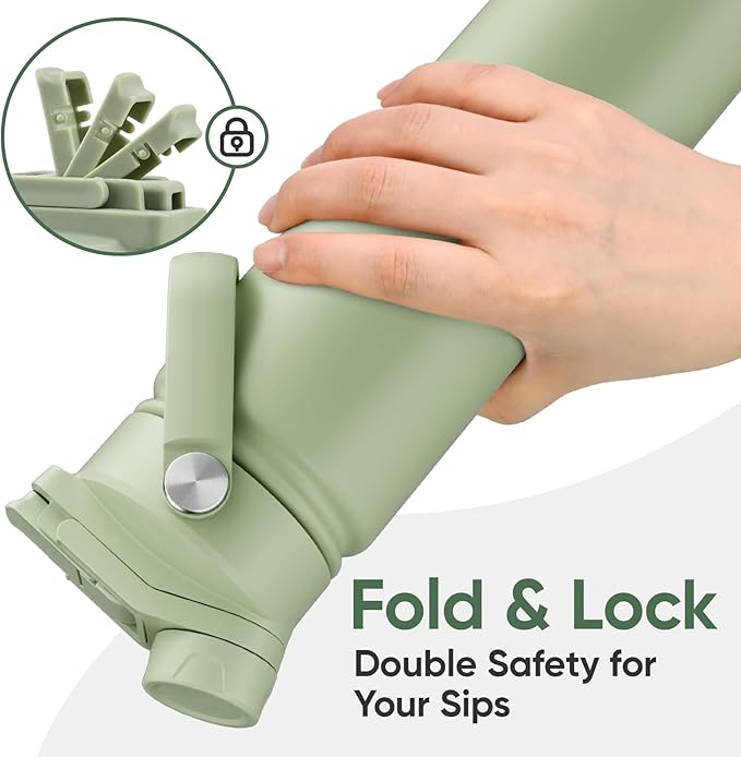 24 oz Insulated Water Bottle, 2-in-1 Lid, Straw & Spout with Protected, Leak Proof, Keep Cold, Stainless Steel, Metal, Reusable, Handle, for Travel, Gym and School, 2 Lids, Sage Green