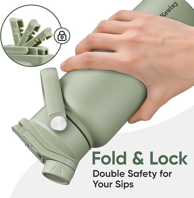 32 oz Insulated Water Bottle, 2-in-1 Lid, Straw & Spout with Protected, Leak Proof, Keep Cold, Stainless Steel, Metal, Reusable, Handle, for Outdoor, Gym and School, 2 Lids, Sage Green