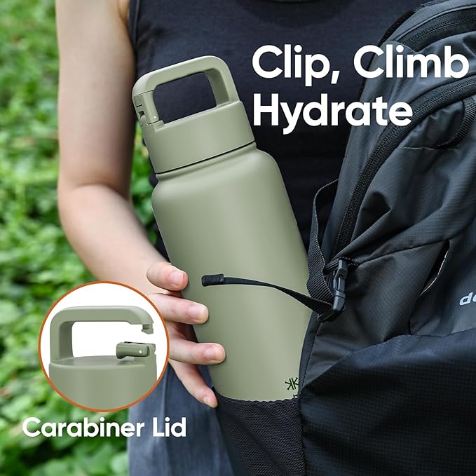 • [Clip-It Carabiner Lid]: Clip it securely to backpacks, gym bags, or belt loops—no more fumbling with loose bottles during outdoor activities. Insulated water bottle sturdy and reliable, it offers essential hands-free convenience for adventures.