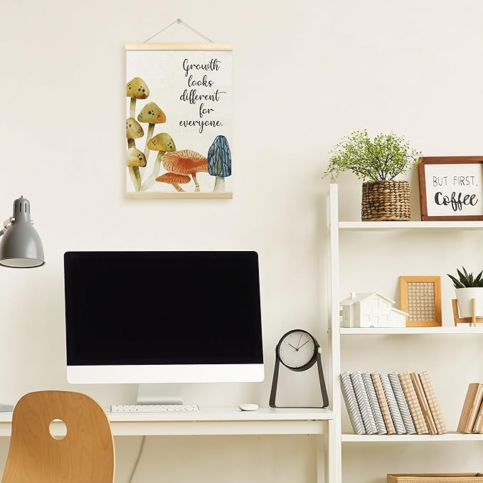 TLESKE Mental Health Mushroom Poster Hanger Frame for Therapy Counseling Office Classroom Nursery, FALL Inspirational Hanging Wall Art Decor, Growth Looks Different for Everyone Prints Picture, 12x16