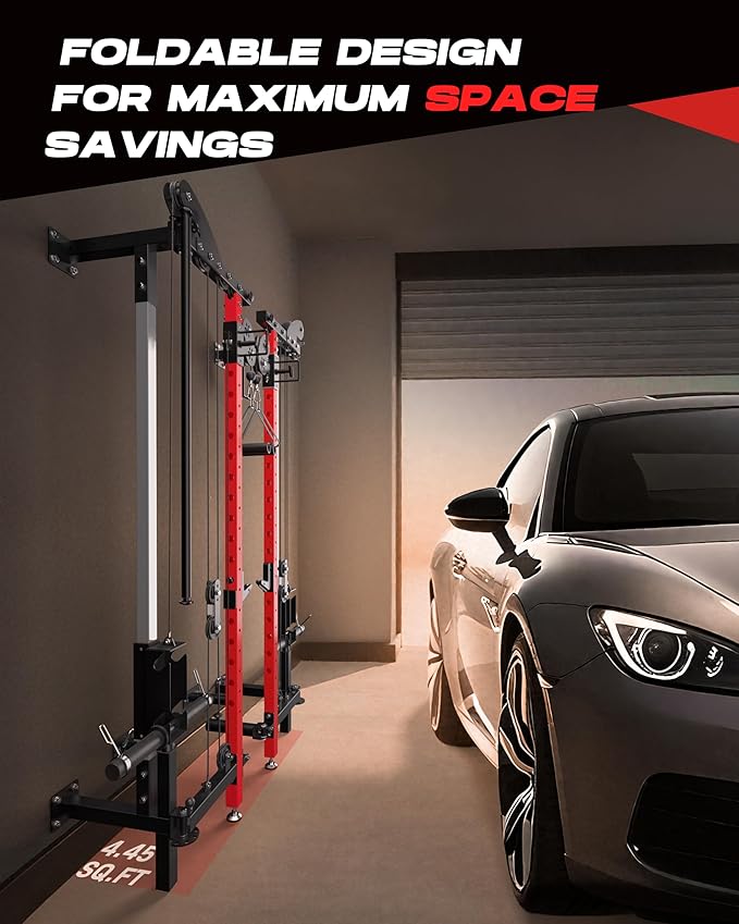 • 【All-in-one equipment】This foldable wall mounted squat machine integrates squat rack, rope cross trainer, puller, pull-up bar and other functions. Five configurable modes (folding, half-open, half-rack, functional trainer and puller cross) can adapt to your workout needs. From heavy weight training to dynamic puller exercises, it can meet your versatility to cope with any workout.