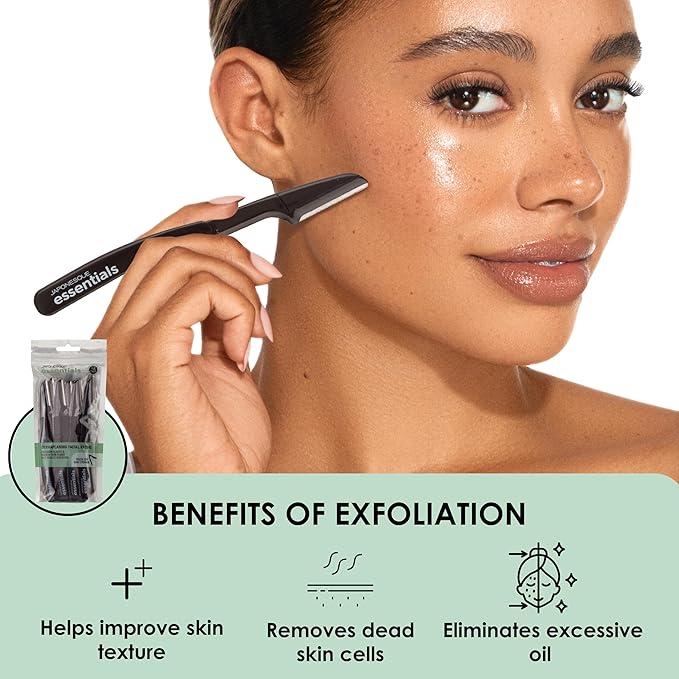 JAPONESQUE Essentials Dermaplaner Facial Hair Razors 12 Pack – Precision Blades for Peach Fuzz Removal, and Eyebrow Shaping for Men & Women