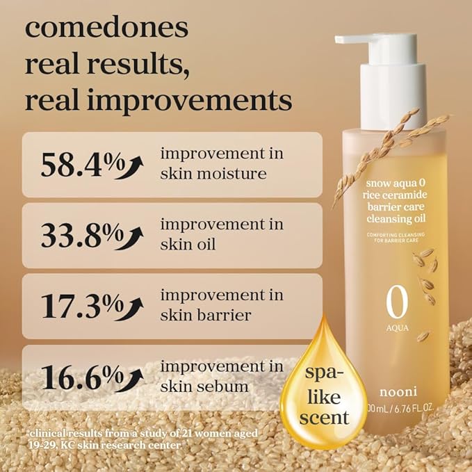 NOONI Facial Cleanser – Snow Aqua 0 Rice Ceramide Barrier Care Cleansing Oil | Makeup Remover, Face Wash, Face Oil Cleanser, Pore Care, Korean Skin Care, Vegan, 6.76 fl oz (200ml)