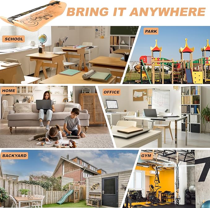 • All-round Fitness Balance Board:This is an exercise equipment that redefines movement scene ,with a lightweight and portable design for multi-scenario use at home, in the gym, outdoors, or in the office (use it as a balance board for standing desk). It is an all-around fitness balance board that can be used as agility training equipment, yoga accessory, skate trainer, skateboard trainer, and pickleball trainer. It can also be used as a balance board snowboard trainer, core trainer, desk balance board, yoga board and slack rope board.