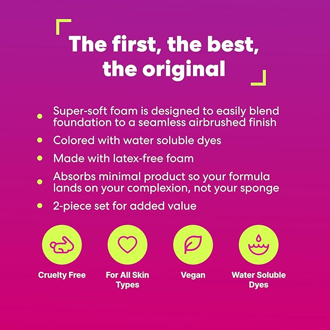 • SMOOTH BLEND: The award winning aqua-activated sponges grow to about twice their size when wet, and absorbs minimal product so your formula lands on your complexion and not your sponge. Bounce and blend the soft sponge to a smooth finish.