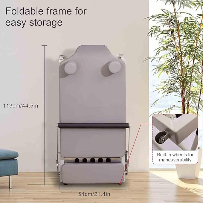 • 4.FOLDABLE & SPACESAVING: Designed for home use, this reformer is foldable and equipped with side-mounted wheels, making it easy to move and store without taking up much space.