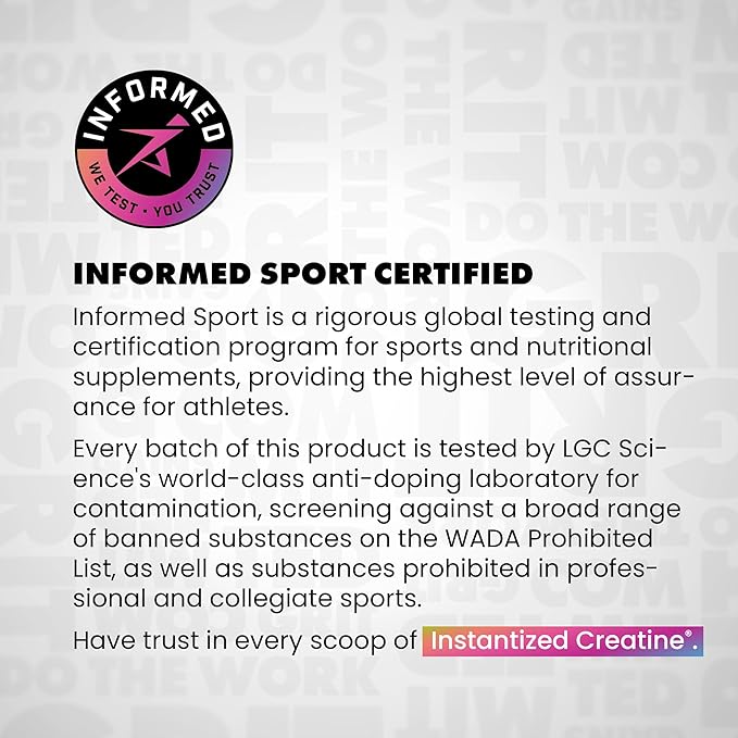 • ZERO BLOAT FORMULA: Experience a lean, energized physique with the help of our creatine powder. Unlike micronized creatine, Instantized Creatine dissolves completely in water. That gets the creatine right to where it needs to be, inside your muscles - not floating around in your gut making you feel bloated and crampy.