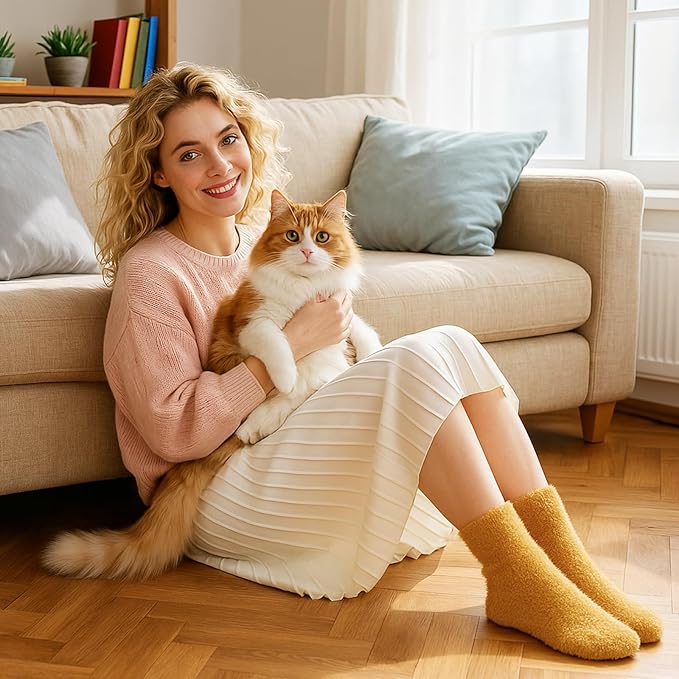 • 6 Pairs Mink Velvet Fuzzy Socks: Enjoy the ultimate comfort with these women's fuzzy socks crafted from soft mink velvet. The multicolored design adds a touch of fun, and the cozy material ensures your feet keep warm the whole day