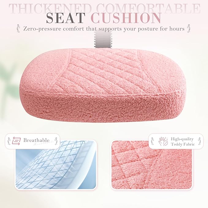 Furmax Ergonomic Criss Cross Legged Office Chair with Wheels, 360°Swivel Adjustable Height Kneeling Desk Chair with Footrest for ADHD, Yoga, Meditation, Home Office (Teddy Fabric, Pink)