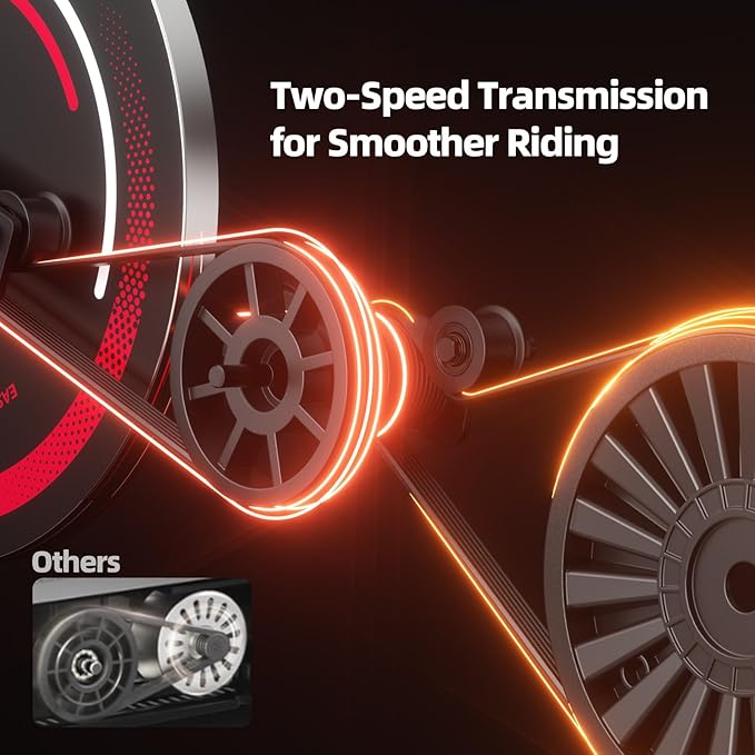 • 【100-Level Silent Magnetic Resistance – Train Anytime】 Equipped with 100 adjustable levels of magnetic resistance, this bike allows you to fine-tune every ride to match your fitness goals. The whisper-quiet belt drive system ensures smooth and silent operation, so you can work out early in the morning or late at night without disturbing family members, neighbors, or roommates. From gentle recovery spins to high-intensity hill climbs, this home exercise bike delivers a versatile and customizable training experience that grows with your progress
