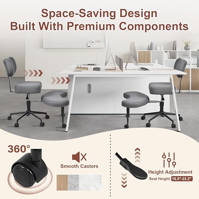 • 【Sturdy and Resistant & Easy to Assembly】This cross legged chair is assembled with SGS-certified cylinders, a solid steel base, and heavy-duty casters. Its resistant construction ensures long-lasting use, and its open design allows for easy access and cleaning. The easy-to-assembly design comes with all the necessary hardware, making installation quick and easy