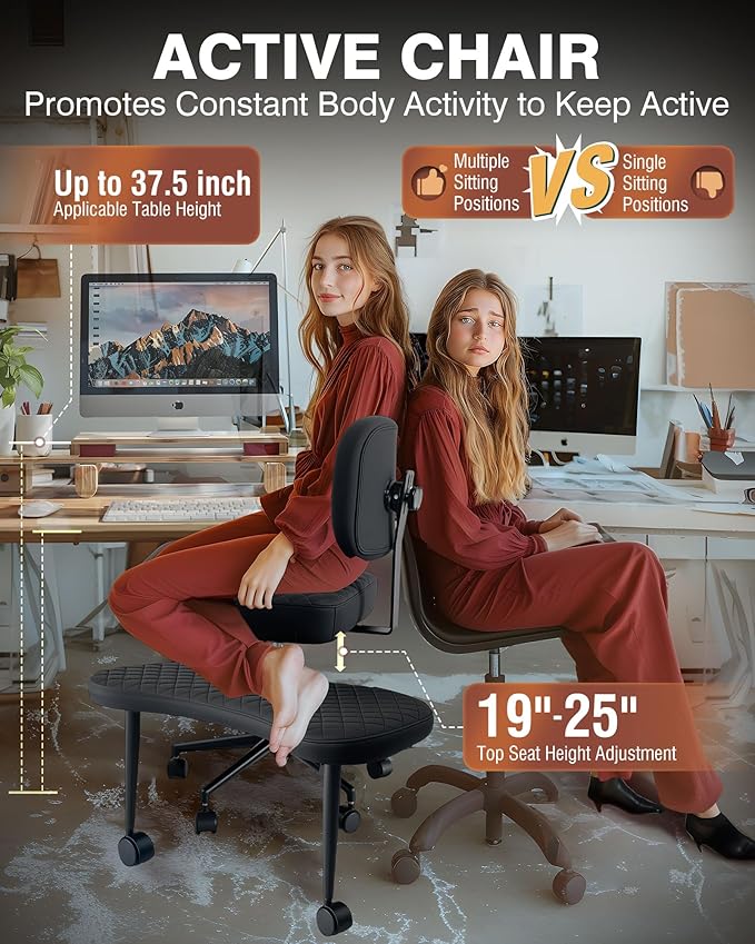 • VERSATILE SUPPORT FOR MOST: This meditation desk chair featuring 6 feet supports and an SGS-certified gas rod provides a robust load capacity of up to 300 lbs; it is engineered to accommodate users of all sizes, ensuring stability and peace of mind without the worry of collapse