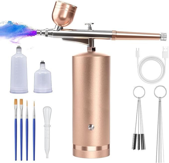 • Included Components : *1 Airbrush with Gift Box, *1 USB-C Charging Cable with User Manual, *3 kinds of Capacity Cups, *4 Paint Brushes with 1 Liquid Extraction Dropper, *5 Spray Cleaners and 5 Wash Needles *1 Airbrush with Gift Box, *1 USB-C Charging Cable with User Manual, *3 kinds of Capacity Cups, *4 Paint Brushes with… See more