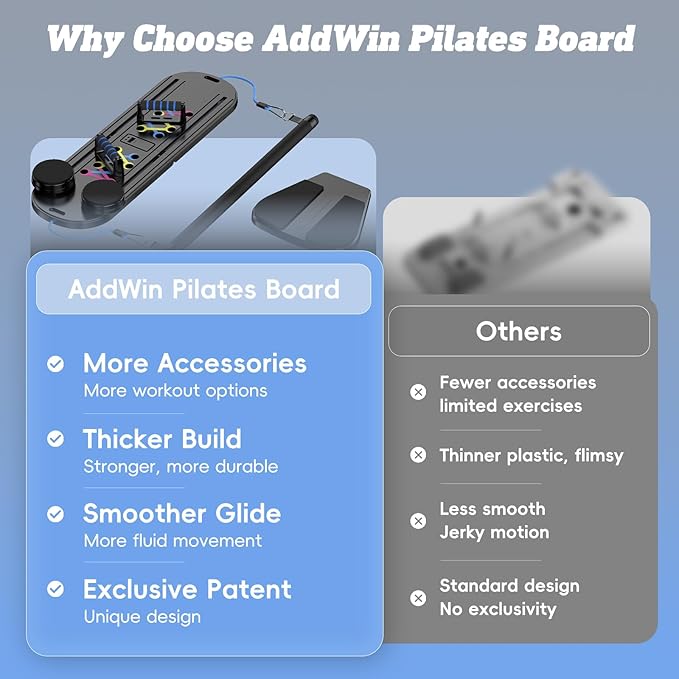 • 💪Your All in One Home Pilates Studio: Bring the Pilates studio experience home without a large machine or high cost. This versatile fitness board allows you to perform over 15 different exercises such as planks, squats, push ups, crunches, and dynamic movements on one low-profile platform. It engages your entire body, including your core, arms, legs, and back. Ideal for developing strength, supporting flexibility, and maintaining an active lifestyle whether you're at home or traveling.