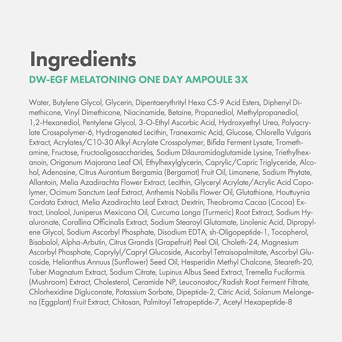 • VISIBLE RESULTS ON STUBBORN CONCERNS. Powered by DW-EGF Peptide, refined to 99%* purity for skincare use, this advanced Korean serum ampoule provides nourishment that supports a visibly refined appearance. With consistent use, skin looks clearer, smoother, and dull areas gradually regain a fresher look.
