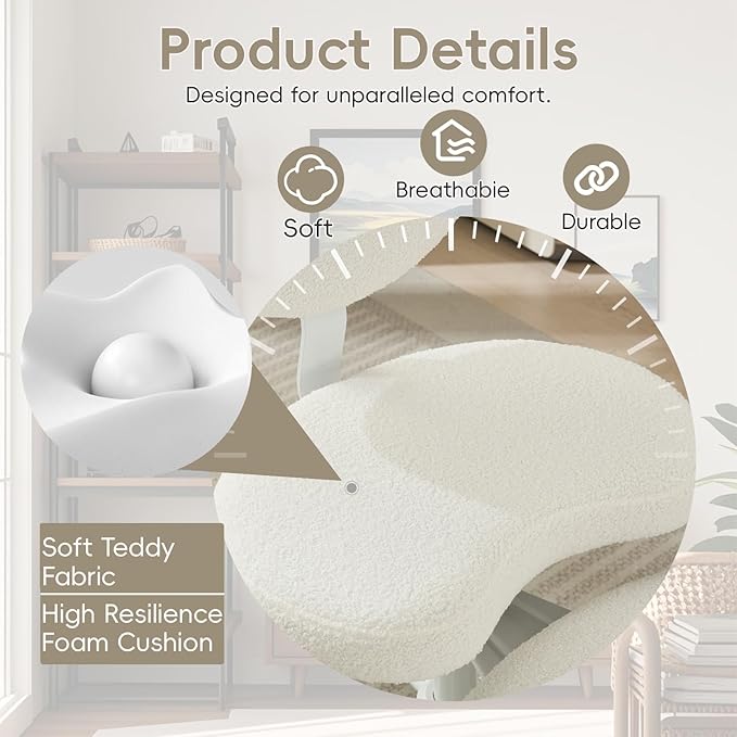• Plush Padding & Supportive Cushioning Designed with high-density foam and firm, supportive cushioning, this chair ensures maximum comfort and proper posture support. Available in a soft, premium Teddy fabric option, the surface is not only cozy and inviting but also durable and easy to clean for daily use.