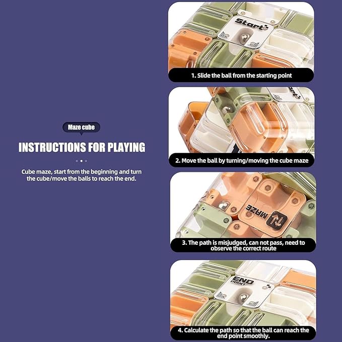 • 【3D Maze Ball & Fidget Cube Hybrid Design】The thrill of a 3D maze ball puzzle with the tactile satisfaction of a fidget cube puzzle! This innovative toy features a compact cube structure with a 360-degree rotating 3D ball maze inside, challenging players to guide the steel ball through intricate paths. Perfect for adults and kids who love brain teaser toys and 3D crystal puzzles, it sharpens spatial reasoning and patience.