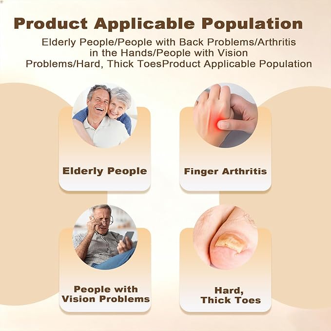 • ✅【Safe & Painless Design】The electric nail clipper has been designed with safety in mind, featuring a rounded blade that avoids cutting too close to the skin. The ergonomic curved design adapts to various nail widths and thicknesses, making it perfect for trimming tough, thick nails comfortably. It's ideal for anyone with sensitive skin or those prone to injuries.