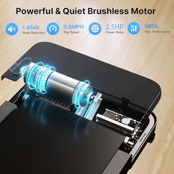• 【Quiet & Powerful 2.5HP Brushless Motor – Smooth & Reliable】Enjoy whisper-quiet workouts thanks to the 2.5HP brushless motor, supporting up to 300 lbs. Easily control speed and incline with the remote and track stats on the clear LED display—perfect for home and office use