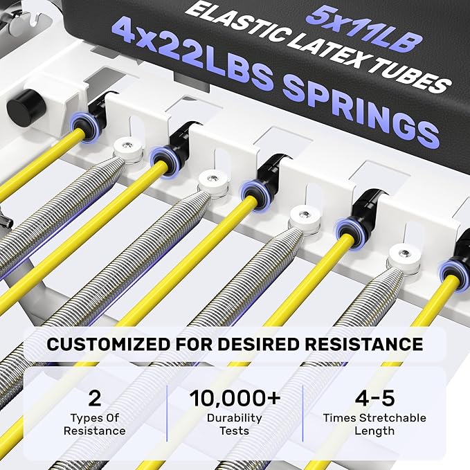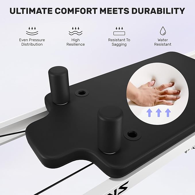 • 【Outstanding Durability】This pilates reformer features a high-strength steel frame that can support up to 440LB. Its springs and elastic cords have undergone over 10,000 tests to ensure reliability and durability. Enjoy a professional-grade pilates experience right at home with this durable pilates machine for home workouts